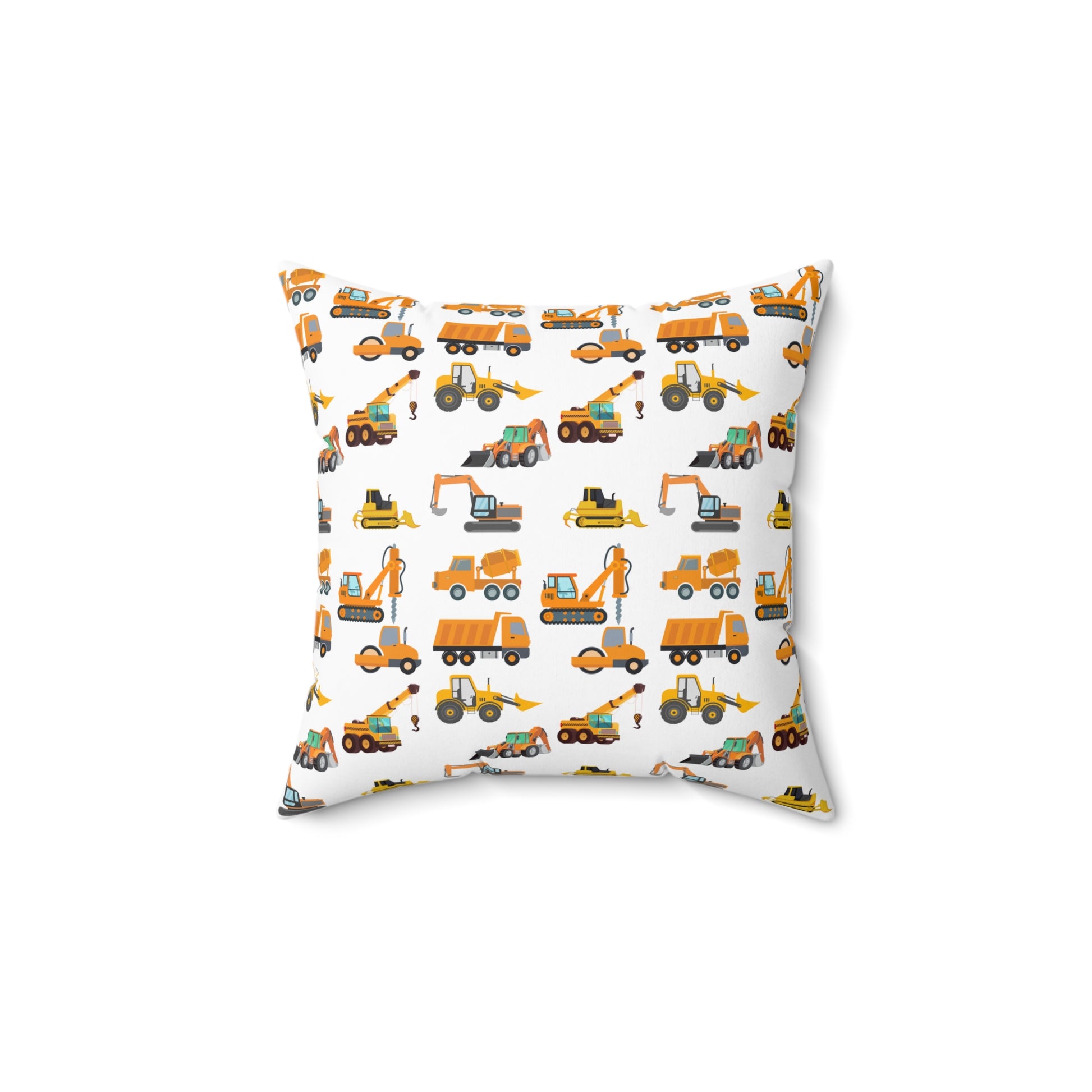 CONSTRUCTION VEHICLES Spun Polyester Square Pillow For Boy's Room